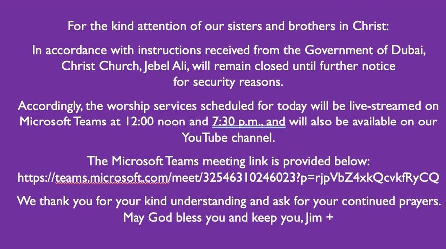 At Christ Church, Jebel Ali, we will welcome you home, giving you a place to belong. Like any home, we are not perfect, not by a long shot, but we will welcome you on a shared journey in following Jesus. Come and See!